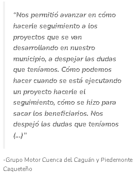 ![]() | El seguimiento participativo representa la oportunidad para construir o restablecer los canales de comunicación entre el Grupo Motor, la administración local y los ejecutores de los proyectos, al crear una ruta metodológica para conocer los avances e identificar las necesidades de información sobre los mismos desde lo local. El ejercicio en Cuenca del Caguán y Piedemonte Caqueteño pone en evidencia tres desafíos. Primero, el acceso a la información para el seguimiento, particularmente sobre las formas de participación que se activan en el marco de la ejecución de los proyectos. Segundo, el conocimiento que tienen las poblaciones beneficiarias sobre cómo acceder a estas formas de involucramiento activo en los proyectos que se ejecutan en su comunidad. Tercero, las barreras que existen para que las comunidades estén informadas o participen de estos proyectos, que corresponde a la situación identificada en el mayor número de veces en el marco del seguimiento participativo en la subregión. Las alternativas de gestión planteadas por las mismas comunidades en la voz de los GM coinciden en la necesidad de fortalecer los canales de comunicación en doble vía entre administradores-ejecutores y comunidades, así como el rol de los GM. De allí que profundizar en la metodología del seguimiento participativo sea fundamental para garantizar la sostenibilidad del proceso, como lo expresan también los integrantes del Grupo Motor de la subregión. Finalmente, el ejercicio hace visible el diálogo entre diferentes lenguajes y formas de entender las necesidades comunitarias y los cambios generados con la ejecución de proyectos en los municipios PDET. De un lado, el lenguaje técnico de la gestión de proyectos que considera el proyecto y su objetivo como unidades de análisis, y de otro, está el lenguaje de la experiencia que vive la comunidad en donde el cambio se mide con relación al impacto que el proyecto o la obra genera en toda la comunidad. El desafío continuará estando en la construcción de puentes entre ambas formas de analizar los avances en la implementación. |