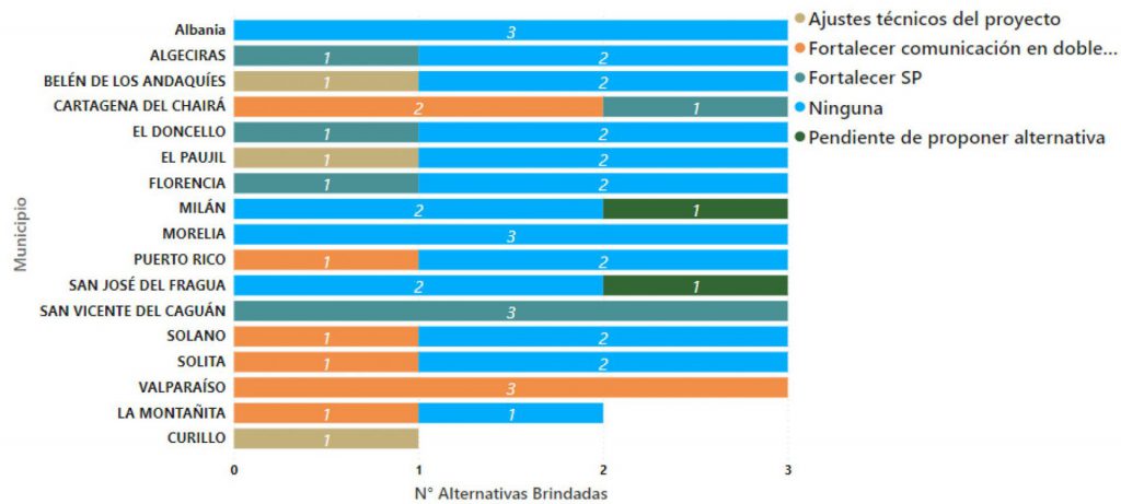 A partir del diálogo de doble vía entre los Grupo Motor y administraciones locales – ejecutores, se propusieron tres alternativas de superación para cada una de las situaciones identificadas.