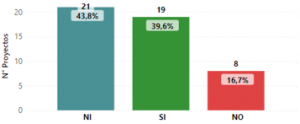 Gráfica 4: Atención a solicitudes de información ![]() | Tercero: la respuesta de ejecutores/administraciones locales a solicitudes de información Únicamente en 19 proyectos la comunidad recibió respuesta a solicitudes de información dirigidas a las administraciones y/o los ejecutores. En otros 8 proyectos, aunque se hicieron solicitudes de información, éstas no fueron respondidas. No se tiene información sobre solicitudes de información en 21 proyectos (NI). Al menos 9 de estos 21, se encuentran en fase de contratación. |