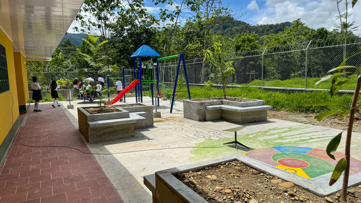 El proyecto contempló la construcción de dos aulas nuevas, salas para profesores con unidad sanitaria, una unidad sanitaria completa (para damas, caballeros y personas con movilidad reducida), zonas de juego y recreación, una placa deportiva multifuncional, cerramiento, paisajismo con árboles nativos y la adecuación general de la infraestructura existente. También incluyó el mejoramiento de redes eléctricas e hidrosanitarias, instalación de cielo raso, carpintería metálica y un sistema de recolección de aguas lluvias.