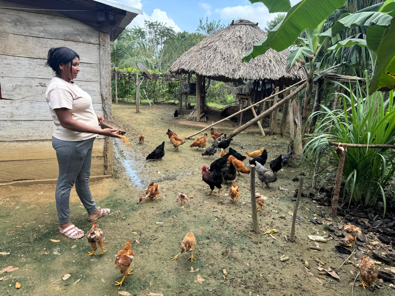 Más allá de la cría de aves, las beneficiarias han diversificado sus parcelas con cultivos de pancoger como maíz, plátano, yuca, frijol y diversas hortalizas. Actualmente, con un avance técnico del 90%, el proyecto se centra en la cosecha y la comercialización. Las participantes ya no solo producen para el autoconsumo, ahora participan activamente en la cadena de valor, vendiendo excedentes de huevos, yuca y coco a haciendas en Montelíbano y preparándose para la Feria de la Ganadería y el Mercado Campesino de Tierralta.