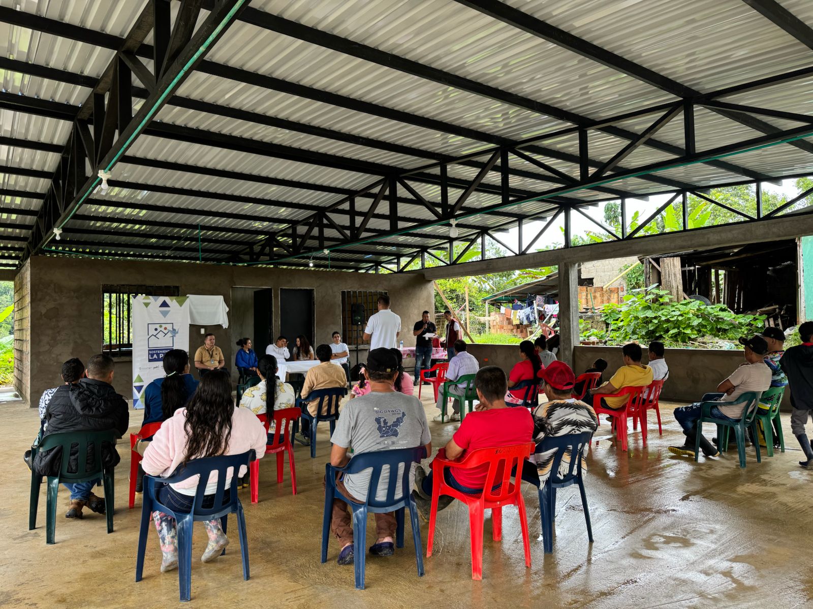 Posteriormente, el 31 de enero de 2026, Pastoral Social, socio implementador del programa, entregó la caseta comunal de la vereda La Esperanza, en el municipio de Florencia. Esta infraestructura, completamente funcional y dotada con servicios públicos, batería sanitaria, espacios administrativos, cocina y un salón multiuso, se consolida como un escenario clave para la organización comunitaria, la articulación institucional y el desarrollo de actividades colectivas en el territorio rural.